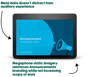 In 2018, Alexa Announcements was launched allowing customers to broadcast quick, one-way voice messages across their Alexa devices — essentially acting like a household intercom. The most common use case was announcing “Dinner is ready,” but the vision was broader: create a fast, simple, and effective way for families to share time-sensitive information throughout the home. I served as the UX Design Lead for the initial launch and subsequent improvements.